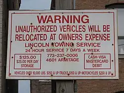 - ^ a b c Schipper, Mark (September 24, 2015). "Lincoln Towing In Hot Water for Unauthorized Towing". DNAinfo Chicago. Retrieved January 2, 2025.