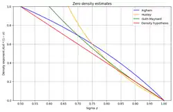 The density hypothesis says that , where denote the number of zeros of with and , and it would follow from the Lindelöf hypothesis.[27][28]