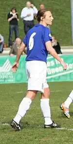 Johnson's football career began at the age of 11 years when she joined a girls club.[5] She also played for Coventry City on one or two occasions while attending Manchester Metropolitan University.[6] However, her Premier League career began relatively late when she joined Liverpool Ladies, from where she joined Everton Ladies in 2003.[5] Everton fans gave her the nickname "Lindsay Lightning" due to her pace.[7] She played for Everton in their 1–0 FA Women's Cup Final defeat to Charlton Athletic Ladies in 2005, earning the Player of the Match award.[8] She also played in Everton's League Cup win in 2008, beating Arsenal Ladies in the final.[9]