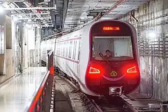 Line 5 of the Fuzhou Metro (Chinese : 福州地铁5号线 ; pinyin : Fúzhōu Dìtiě Wǔ Hào Xiàn ) is a metro line in Fuzhou. It starts at Jingxi Houyu and as of February 2023, ends at Ancient Luozhou Town, with a total length of 22.4 km (13.9 mi).[ 1] The line opened on 29 April 2022.[ 1] The opening of a further section from Ancient Luozhou Town to Fuzhou South railway station , which will extend the line's length to 27.7 km (17.2 mi), was delayed due to the delay of the reconstruction of the train station for the Fuzhou–Xiamen high-speed railway , which is expected to re-open in the second half of 2023.[ 2] Line 5's color is ■ purple.