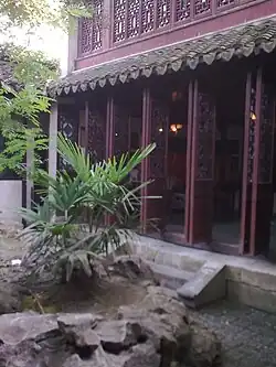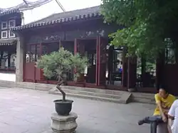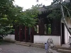 A complex and unique structure composed of a courtyard, open 3 bay hall, and covered corridor which functions as a single space. The courtyard is planted with two trees symbolizing jade (Magnolia soulangia) and gold (Osmanthus fragrans), a sign of prosperity. The entry to this space is marked by a tablet inscribed by Deputy Prime Minister Zhu Boqi which read, "Paradise on Earth".[2] |