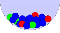 If a player drew a red ball, their team's turn was over and play continued with the other team. Red balls were discarded after having been drawn so they didn't return to the ball basin.