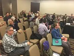 The four-day Annual Meeting co-meets with a number of sister organizations such as the American Dialect Society, the American Name Society, the Society for the Study of the Indigenous Languages of the Americas, the North American Association for the History of the Language Sciences, North American Research Network in Historical Sociolinguistics, Society for Computation in Linguistics, and the Society for Pidgin and Creole Languages.[13] Members of the LSA may submit abstracts to the Program Committee for consideration for talks and poster sessions at the annual meeting. The LSA also offers "minicourses" at its annual meeting which offer instruction in various fields such as Python scripting and statistical methods using R.[14][15]