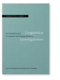 - ^ "Lingvisticae Investigationes. Revue internationale de linguistique française et de linguistique générale". Lingvisticae Investigationes. 33 (1). John Benjamins Publishing Company. 2010.