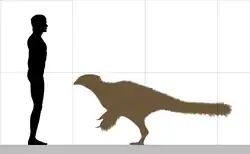 Lingyuanosaurus was a relatively small therizinosaurian, similar in size to the closely related Beipiaosaurus at about 2.2 m (7.2 ft) long.[1][2] The femur of the specimen was only 200 mm (7.9 in) long, and Yao and colleagues used its circumference to estimate a weight of about 12 kg (26 lb). Lingyuanosaurus also had a mix of both basal and derived features, indicating that therizinosauroids were undergoing an evolutionary transition around the time that these three taxa lived.[1]