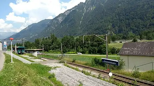 Linthal Braunwaldbahn railway station is a railway station in the municipality of Glarus Süd in the Swiss canton of Glarus. It is situated on the Weesen to Linthal railway line in the valley of the Linth river, some 500 metres (1,600 ft) short of the terminus of the line at Linthal station in the village of Linthal. The station opened in 1982 in order to provide a convenient interchange with the Braunwaldbahn funicular to the car-free resort of Braunwald on the mountain above.[1][2][3]