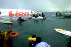 Lion Air Flight 904 was a scheduled domestic passenger flight from Husein Sastranegara International Airport in Bandung to Ngurah Rai International Airport in Bali, Indonesia. On 13 April 2013, the Boeing 737-800 operating the flight crashed into water short of the runway while on final approach to land. All 101 passengers and 7 crew on board survived the accident. At 3:10 pm, the aircraft crashed approximately 1.1 kilometres (0.6 nmi) short of the seawall protecting the threshold of Runway 09. The aircraft's fuselage broke into two and 46 people were injured, 4 of them seriously.[1][2]