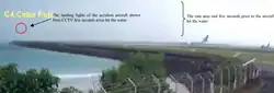 ![]() The Boeing 737 as it came to rest after impacting the shallow waters | |