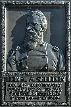 Sheldon served in the Union Army during the Civil War. He was mustered in as lieutenant colonel of the 42nd Ohio Volunteer Infantry Regiment on November 27, 1861, after raising five companies in six days. Prior to his service with the 42nd Ohio Volunteer Infantry Regiment he served as a cavalry officer with the 2nd Ohio and was commissioned a Brigadier General of the militia by Governor Salmon P Chase in 1858. Sheldon was promoted to the rank of colonel on March 14, 1862, becoming the regiment's second commander following personal friend and future President James Garfield. Sheldon fought in the battles of Middle Creek, Chickaway Bayou, the capture of Cumberland Gap and his brigade launched the attack on Arkansas Post. Under Major General Ulysses S. Grant he participated in the attack on Port Gibson, Mississippi, and saw action during the assault on Thompson’s Hill. Wounded in the hand by a musket ball, Colonel Sheldon stayed at his post, leading two gallant charges on the enemy position. During the engagements at Raymond, Jackson, and Black River Bridge, Colonel Sheldon followed his regiment in an ambulance but recuperated in time to participate in the siege of Vicksburg.