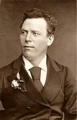 One of Brough's popular characters was Constable Robert Roberts, "Policeman X24", an early example of the archetypical British bobby, which he presented at concerts and benefit performances.[23] The character was a vehicle for Brough to entertain an audience with banter and comic songs. In contrast, Brough also played a serious role as a policeman in an 1884 one-act play, Off Duty, as Sergeant Ben Bloss, in which, The Morning Post said, "Mr Lionel Brough has a pathetic part, which he plays with earnestness and feeling."[24] Brough originated the role of Nick Vedder in the hit operetta Rip Van Winkle, in 1882, and played in another operetta, Nell Gwynne, in 1884. In 1885, he toured the United States with Violet Cameron.[7] In 1888, he appeared in T. Edgar Pemberton's comedy, Steeple Jack,[11] and two years later in the operetta La Cigale.[25] Brough played the comic lead, Pietro, in Gilbert and Alfred Cellier's comic opera The Mountebanks (1892).[26]