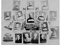 After the end of the New Edinburghs' playoffs that season, Hitchman was signed by the Senators in 1923, first appearing in a victory against the Hamilton Tigers on February 28.[8] His first playoff game for the Senators was tumultuous, a match against the Montreal Canadiens on March 7 in which future teammate Sprague Cleghorn - with whom he had been sparring all evening - crosschecked Hitchman in the face, knocking him out.[9] Cleghorn received a match penalty for the act, which provoked a near-riot from the home crowd and an assault on the referee.[9] While too injured to play in the first Stanley Cup semifinal match against the Vancouver Maroons of the Pacific Coast Hockey Association, he played in the three remaining matches. In the best-of-three finals against the Edmonton Eskimos of the Western Canada Hockey League, Hitchman starred in a decimated Senators' defence, scoring the tying goal which sent the first game into overtime, won by the Senators en route to their tenth Cup victory.[10]