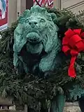 The sculptures are, nowadays, decorated in the winter holiday season with wreaths and bows in an annual "wreathing of the lions" ceremony.[3] This tradition was begun in 1991 and has been done nearly every year since.[24] The wreathing ceremony is traditionally held the day following the United States Thanksgiving holiday observance.[25]