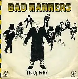 "Lip Up Fatty" is a single released by British Two Tone and ska band Bad Manners in June 1980, which reached No. 15 in the UK Singles Chart.[1] It is one of a number of songs by Bad Manners about 'being fat', (a reference to the round figure of frontman, Buster Bloodvessel). According to Bloodvessel "Lip Up Fatty" was an expression used at his school "to tell people to shut up". Its signature melodic lines were a simple but careful blend of brass instruments and lead harmonica theme, played by Alan Sayag (Winston Bazoomies).