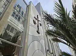 Created to celebrate the life of Ellen Melville, the large bronze sculpture Justice adorns the wall of the Ellen Melville Centre in central Auckland. The work depicts the scales of justice but tipped in favour of women.[43]