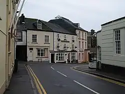 The A38 trunk road used to pass through the town centre but a dual carriageway bypass now carries traffic south of the town, leaving the town centre accessible but with low traffic levels.