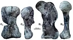 Lisowicia would not be officially named and published as a new taxon until January of 2019, although the name and the description were released online in November 2018 prior to the official publication date. The genus is named after the village Lisowice where the original specimens were found, while the specific name bojani honours Ludwig Heinrich Bojanus (1776–1827), a German physician and naturalist who did pioneering work in comparative anatomy and paleontology.[10] The known fossils of Lisowicia are held in the collections of the Institute of Paleobiology at the Polish Academy of Sciences and the Department of Paleobiology and Evolution at the University of Warsaw, Poland.