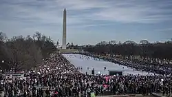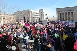 10,000+[7] | In Washington, D.C., thousands[8] gathered at the Reflecting Pool at the Lincoln Memorial and marched to the White House.[9] The crowd was smaller than the 2017 rally, which according to WUSA9 had almost 500,000 participants.[8] Just ahead of the start of the rally, over 12,000 people had RSVP'd they were attending on the event's Facebook page, with another 21,000 stating they were interested.[10] U.S. Sen Kirsten Gillibrand (D-NY), one of Trump's targets for Twitter attacks, addressed the crowd: "It is women who are holding our democracy together in these dangerous times." Also speaking, House Minority Leader Nancy Pelosi (D-CA), Sen. Tim Kaine (D-VA), Sen Richard Blumenthal (D-CT), DNC Chair Tom Perez, & Toni Van Pelt, president of the National Organization for Women. | |