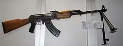 The below table gives a list of firearms that can fire the 7.62×39mm cartridge, first developed and used by the Soviet Union in the late 1940s.[1] The cartridge is widely used due to the worldwide proliferation of Russian SKS and AK-47 pattern rifles, as well as RPD and RPK light machine guns.