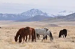 Herd Management Areas (HMA) are lands under the supervision of the United States Bureau of Land Management (BLM) that are managed for the primary but not exclusive benefit of free-roaming wild horses and burros.[1] While these animals are technically feral equines descended from foundation stock that was originally domesticated, the phrase "wild horse" (and wild burro) has a specific meaning in United States law, giving special legal status to the descendants of equines that were "unmarked and unclaimed" on public lands at the time the Wild and Free-Roaming Horses and Burros Act of 1971 (WFRHBA) was passed. Horses that escaped or strayed from other places onto public lands after December 15, 1971, did not automatically become protected "wild horses".[2] In 1971, free-roaming horses and burros were found on 53,800,000 acres (21,800,000 ha) of federal land. Today there are approximately 270 HMAs across 10 states, comprising 31,600,000 acres (12,800,000 ha). Additional herd areas (HAs) had free-roaming horse or burro populations at the time the Act was passed and some still have horse or burro populations today, but unlike the HMAs, they are not managed for the benefit of equines. In addition, some free-roaming equines protected under the WFRHBA are found on lands managed by the National Park Service (NPS), and United States Forest Service (USFS), where they are called wild horse territories (WHT). The BLM sometimes manages equine populations for other federal agencies, the USFS manages some of its own WHTs, and sometimes the agencies administer these areas jointly.