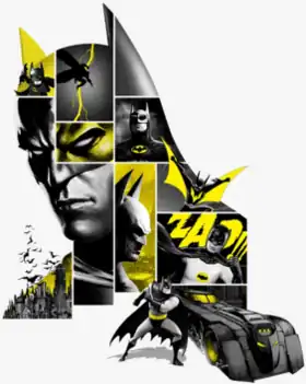 ![]() Promotional image commemorating the 80th anniversary of the Batman franchise, depicting various adaptations of the character | |