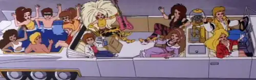 - Jett Lyman - A blonde female rocker with extremely big hair and an exaggerated Valley girl accent. She disapproves of Gig's womanizing, despite being a flirt in her own right. It turns out she herself is smitten with him. Ultimately, in "Troy Triathlon" (the series' next-to-last episode), both she and Gig earn a recording contract from Vic Vinyl of Starstruck Music.[18] In "Miracle at the Teen Club - Part 2", both she and Gig made a cameo appearance giving free concerts at a mall that was torn down to build Buck's Christmas tree lot and in the angry mob.[8] Voiced by Karen Bernstein.