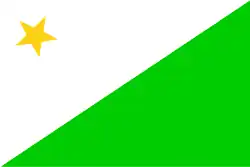 1949 | 1st Flag of Bhutan | Divided diagonally from the lower hoist-side corner to the upper fly-side corner; the upper triangle is yellow and the lower triangle is red, with a white dragon holding four jewels in its claws centered along the dividing line and facing away from the fly.[5][6]
