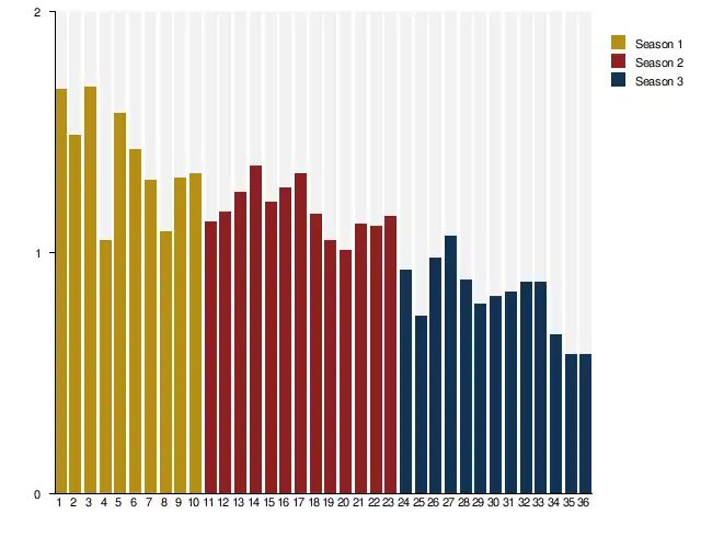 | 2 | 1.13 | 1.17 | 1.25 | 1.36 | 1.21 | 1.27 | 1.33 | 1.16 | 1.05 | 1.01 | 1.12 | 1.11 | 1.15 | |