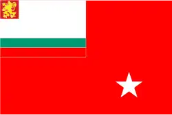 The old Naval ensign from 1954-1990 but instead of the red stat is placed the Bulgarian lion used in the old monarchical naval ensigns.
