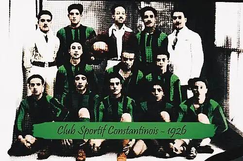 Club sportif constantinois is an Algerian professional football club based in Constantine, Constantine Province. The founding date recognized by the LFP is June 26, 1898.[1] the professional football league does not cite any date of creation of the club and uses the CS Constantine logo, which bears the founding date of 1898.[1] The club still insists on the date of June 26, 1898, which would make the club among the deans of Algerian and African football. The main argument put forward by CS Constantine is that the latter has existed under different acronyms throughout its history, while keeping the same colors and the same values.[1] Thus, from 1898 to 1912, the club would have been called IKBAL Émancipation. Then, it reappeared from 1916 to 1918 under the name of Étoile club musulman constantinois, to finally become in 1898, the current Club sportif constantinois.[1]