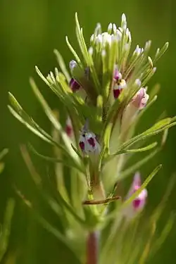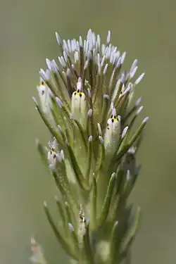 This is a list of the species in the genus Castilleja. They are commonly called paintbrushes,[1] painted-cups, or owl’s-clovers in English.[2] These 218 species and two natural hybrids are considered valid by Plants of the World Online (POWO) as of 2024.[3] This list largely agrees with World Flora Online (WFO) with some exceptions. WFO lists Castilleja eggeri as unchecked.[4] It also spells some species names differently, Castilleja rhexiifolia with a single "i" instead of a double "ii", Castilleja tolucensis as Castilleja toluccensis, and Castilleja virgatoides as Castilleja virgayoides.[5][3] In addition one of the two hybrids, Castilleja × cognata, is listed in WFO as a species rather than as a hybrid.[6]