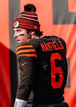 After resuming play in 1999 following a three-year suspension of operations, the franchise has been notable for its instability at the quarterback position.[1][2][3] From 1999 through end of the 2024 season, the team has had 40 players start at quarterback, with only three seasons (2001 with Tim Couch, 2019 and 2020 with Baker Mayfield) in which the same quarterback started every game.[1][4]