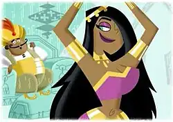 Hotep-Ra (voiced by S. Scott Bullock) is the mummy-like spirit of an ancient minion of King Duulamun, an Egyptian pharaoh who resembles Tucker Foley. He was released from his eternal sleep when Tucker looked into the mirror at the front of Ra's sarcophagus. He served Tucker and helped him regain his kingdom as pharaoh, but secretly planned to take over the kingdom once it was restored. Deceitful and sneaky, Hotep-Ra was eventually defeated by Tucker when he realized he had been used by Hotep-Ra.