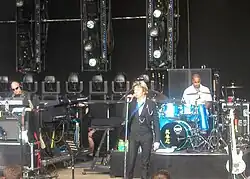The Mini Tour included only four dates, all in June 2000, and featured the same tour band except Hamilton, who was replaced by the returning Earl Slick.[79] It included a show at Glastonbury which was later described as "iconic".[80] Heathen (2002) included various session musicians, including longtime producer Tony Visconti drummer Matt Chamberlain, guitarist David Torn, violinist Lisa Germano, bassist Tony Levin, and guest guitarists Pete Townshend (The Who) and Dave Grohl (Foo Fighters).[81][82] Around this time, music that was later released on Toy (2019) was recorded.[83]