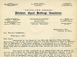 - ^ a b c Englehart, Lora Bilton (July 24, 2020). "We Look Back at Delaware's Integral Role in the Fight for Women's Voting Rights". Delaware Today. Retrieved November 22, 2020.