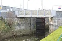 Effin Bridge, the railway lift-bridge over the Royal Canal on the seaward side of Newcomen Bridge in Dublin,