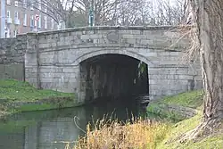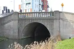 | Robert Emmet Bridge | Clanbrassil Bridge (original name), Harold's Cross Bridge | Harold's Cross Road, Clanbrassil Street Upper - R137 | The original, Clanbrassil Bridge, was built in 1791 with tram tracks added in 1879 along with a longer approach to the bridge to lessen the gradient.[26] The bridge was rebuilt in 1935-36 and renamed to Emmet Bridge in honour of the rebellion leader Robert Emmet, who was arrested in the vicinity in 1803.[27] There is a ghost bike attached to railings beside the bridge. | |
