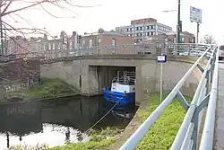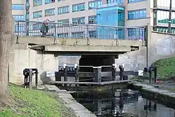 | La Touche Bridge | Portobello Bridge | Rathmines Road Lower, Richmond Street South - R114 | Built in 1791, named after William Digges La Touche,[20] a director of the Grand Canal Company. In 1861 a horse-drawn carriage fell into the lock with a loss of all 6 passengers and all horses.[21] Tram tracks were first added in 1871,[22] with overhead electricity completed in 1896.[23] During the Easter Rising and Civil War there were a number of events that took place at the bridge due to its strategic location.[24] In 1928 a bridge widening scheme was undertaken jointly by Dublin Corporation and Rathmines Urban District Council, the bridge was widened by 10 feet and steel lock gates were added.[25] Maintenance work was carried out in 2004 (steel parts of bridge replaced). | ![]() |