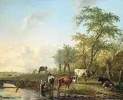 This is a list of Dutch painters who were born and/or were primarily active in the Netherlands. For artists born and active in the Southern Netherlands, see the List of Flemish painters. The artists are sorted by century and then alphabetically by last name. In general, artists are included that are mentioned at the ArtCyclopedia[1] website, in the Grove Dictionary of Art,[2] and/or whose paintings regularly sell for over $20,000 at auctions.[3] Active painters are therefore underrepresented, while more than half of the artists are baroque painters of the 17th century, roughly corresponding to the Dutch Golden Age. The names of older artists often have many different spellings; the preferred spelling is used as listed in the Netherlands Institute for Art History[4] database, but several painters are listed twice when their common alternative names are alphabetically far apart.