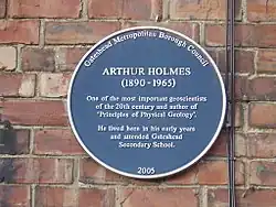 - ^ "Gateshead Blue Plaques. Arthur Holmes 1890–1965". Gateshead Libraries. 2011. Retrieved 8 June 2013.