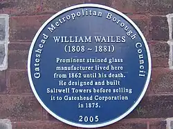 - ^ "Gateshead Blue Plaques; William Wailes 1808–1881". Gateshead Libraries. 2011. Archived from the original on 27 January 2013. Retrieved 11 April 2013.