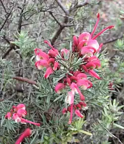 | 'Pretty Pink' | Grevillea arenaria x G. 'Crosbie Morrison'. Introduced in Victoria in 1985. | [2] | ||