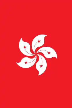 1 July 1997–present | Flag of Hong Kong | A white, five-petal Bauhinia blakeana on a red field with 1 star on each of the petals.[1] The Chinese name of Bauhinia × blakeana has also been frequently shortened as 紫荊/紫荆 (洋 yáng means "foreign" in Chinese, and this would be deemed inappropriate by the PRC government), although 紫荊/紫荆 refers to another genus called Cercis. A statue of the plant has been erected in Golden Bauhinia Square in Hong Kong. |