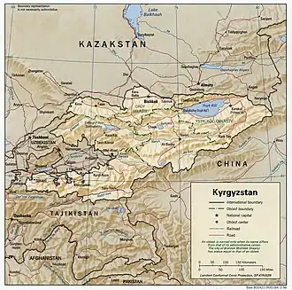 - ^ "Kyrgyzstan". The World Factbook. United States Central Intelligence Agency. July 2, 2009. Retrieved July 23, 2009.