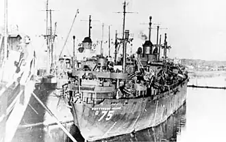 Cebu was built by Bethlehem Fairfield Shipyards. Her keel was laid on 21 September 1943. She was launched as Francis P. Duffey on 18 October and delivered to the United States Navy as Cebu on 27 October. A repair ship, she was laid up in Suisun Bay in June 1947. She was scrapped at Portland, Oregon in October 1973.[2][43]