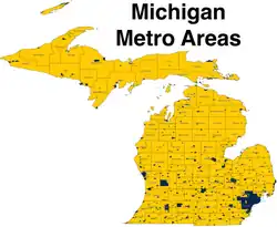The following is a list of the metropolitan statistical areas in the U.S. state of Michigan, as defined by the U.S. Office of Management and Budget. Shiawassee County was added to the Lansing metropolitan area in 2018; the county is included in the Lansing MSA 2010 population.