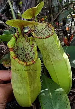 {{cite book}}:|website=ignored (help)CS1 maint: multiple names: authors list (link) - ^ Tamizi, Amin-Asyraf; Mohamad, Salasiah; Shakri, Mohamad-Alias; Mohd-Rusli, Nurshahidah; Mat-Amin, Noriha; Mohamad-Jamali, Muhamad-Arif (2023-08-08). "Insights into The Diversity of Nepenthes L. (Nepenthaceae) Across Peninsular Malaysia, Including The First Sighting of an Undescribed Taxon with Flared Peristomes and Quadruple-Row Ventral Wings". Journal of Sustainable Natural Resources. 4 (1): 10–36. doi:10.30880/jsunr.2023.04.01.002. ISSN 2716-7143.