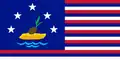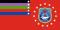 Blue canton with cornucopia in top-hoist. Red canton with pick and shovel in top-fly. White lower half with ship and blue horizontal. |