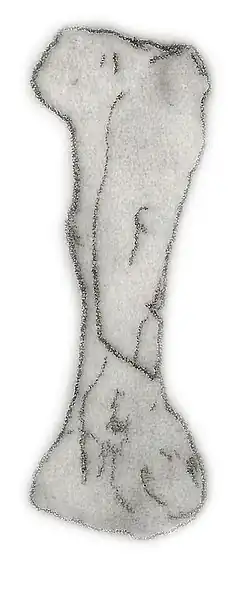 The only recorded find of a dinosaur fossil in Central America consists of a single femur discovered from Middle Cretaceous age deposits in Comayagua Department in the central part of Honduras. The fossil had been found in January, 1971 by Bruce Simonson and Gregory Horne, though it was later sent to the National Museum of Natural History, USA where it is deposited under catalogue number USNM PAL 181339. The discovery was not formally described until 1994 where it was identified as the femur of a small hadrosaur or iguanodontid, probably the former.[3] The first report of a dinosaur from Central America ever however was a newspaper article published in August of 1933 by Canada's Montreal Gazette, though the story was picked up by several American newspapers. The fossil was an isolated metatarsus that had been collected by University of Pennsylvania explorer George Mason from woods near Olanchito, Honduras, though a vertebra was also mentioned to be found by locals. The bones have since been lost and their true identity remains indeterminable.[4]