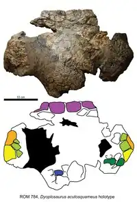 - ^ Arbour, V. M.; Burns, M. E.; Sissons, R. L. (2009). "A redescription of the ankylosaurid dinosaur Dyoplosaurus acutosquameus Parks, 1924 (Ornithischia: Ankylosauria) and a revision of the genus". Journal of Vertebrate Paleontology. 29 (4): 1117. Bibcode:2009JVPal..29.1117A. doi:10.1671/039.029.0405. S2CID 85665879.