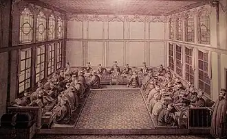 The exact date of the formal establishment of the office is unknown.[1] According to some sources, the first defterdar was the Kadı (judge) of Mihaliç, Çelebi bin Mehmed, appointed in 1359 or 1360, during the reign of Murad I.[1] During the reign of Bayezid I (1389–1402), the poet Zahiri is mentioned as the defterdar.[1]